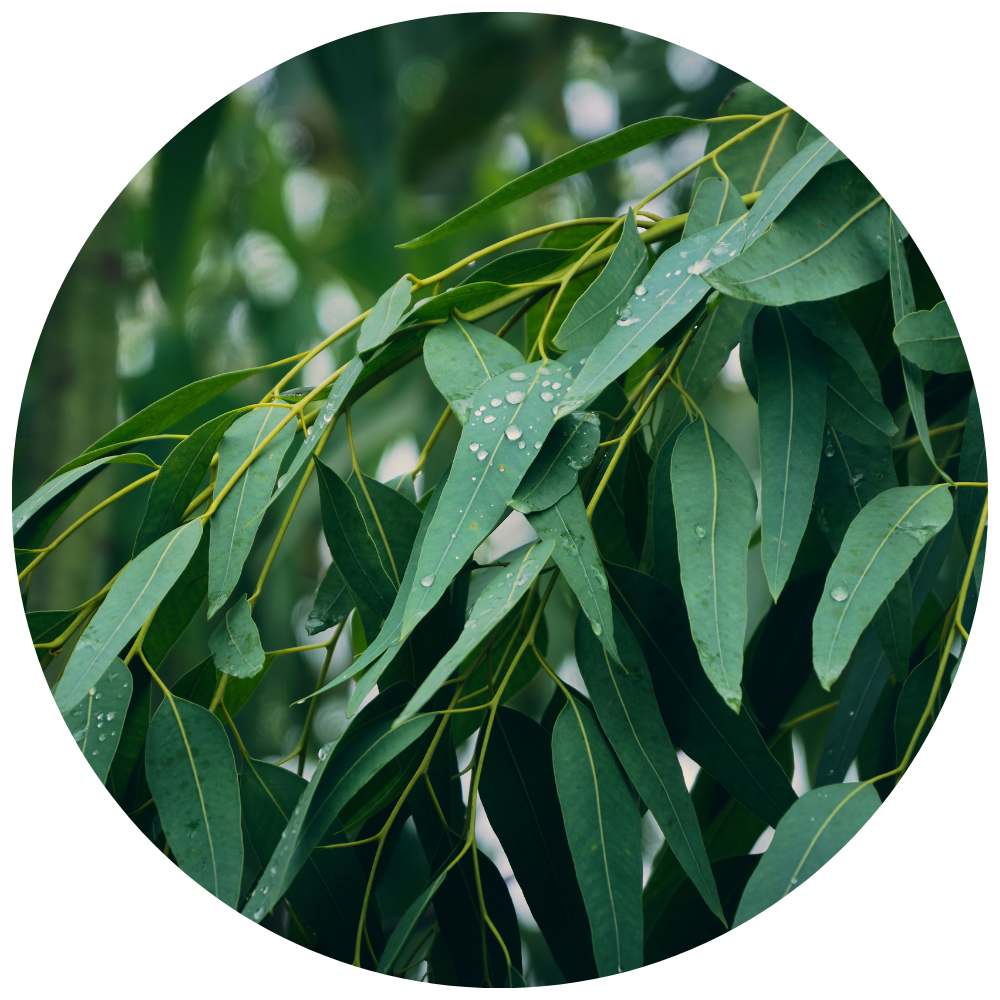 Eucalyptus Oil: Renowned for treating and preventing acne, boosts circulation for healthy vibrance and glow, with anti-inflammatory properties that reduce redness.